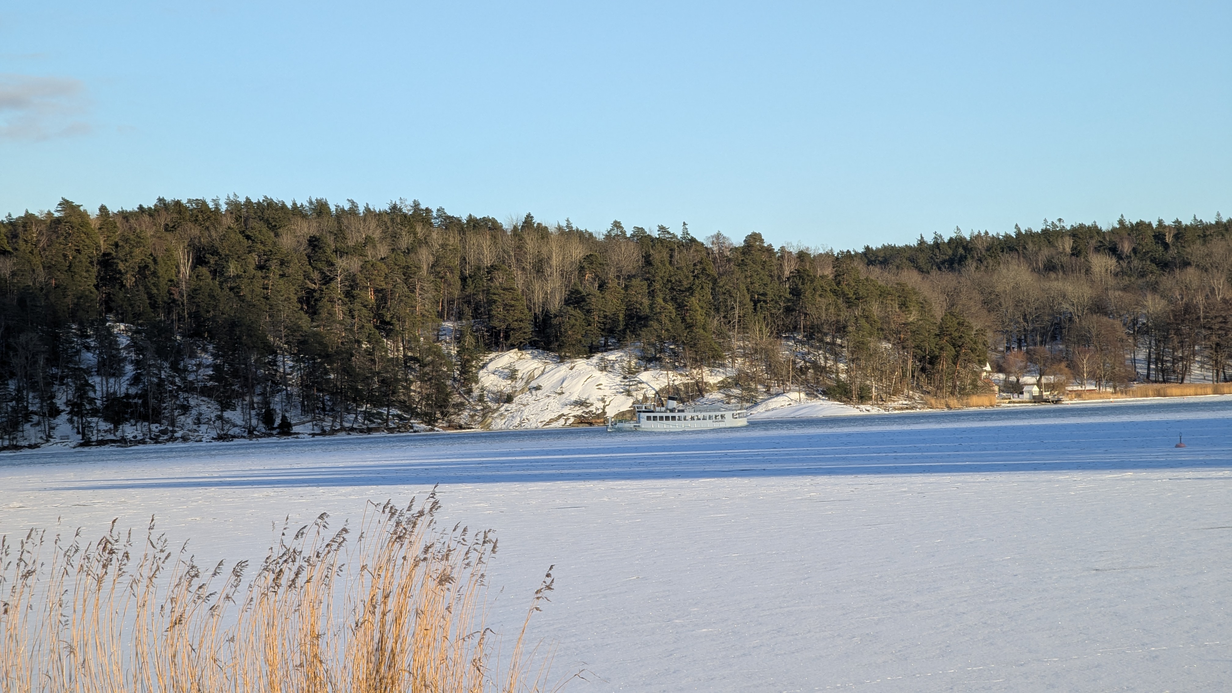 We reach the shoreline. Take a few photos, as one does — proof of vitality, or at least existence. Observe the footprints on the ice, listen to the dramatic creaking beneath the frozen surface. Decide, wisely, not to test the ice. That sort of risk is for people who don’t check their blood pressure voluntarily.